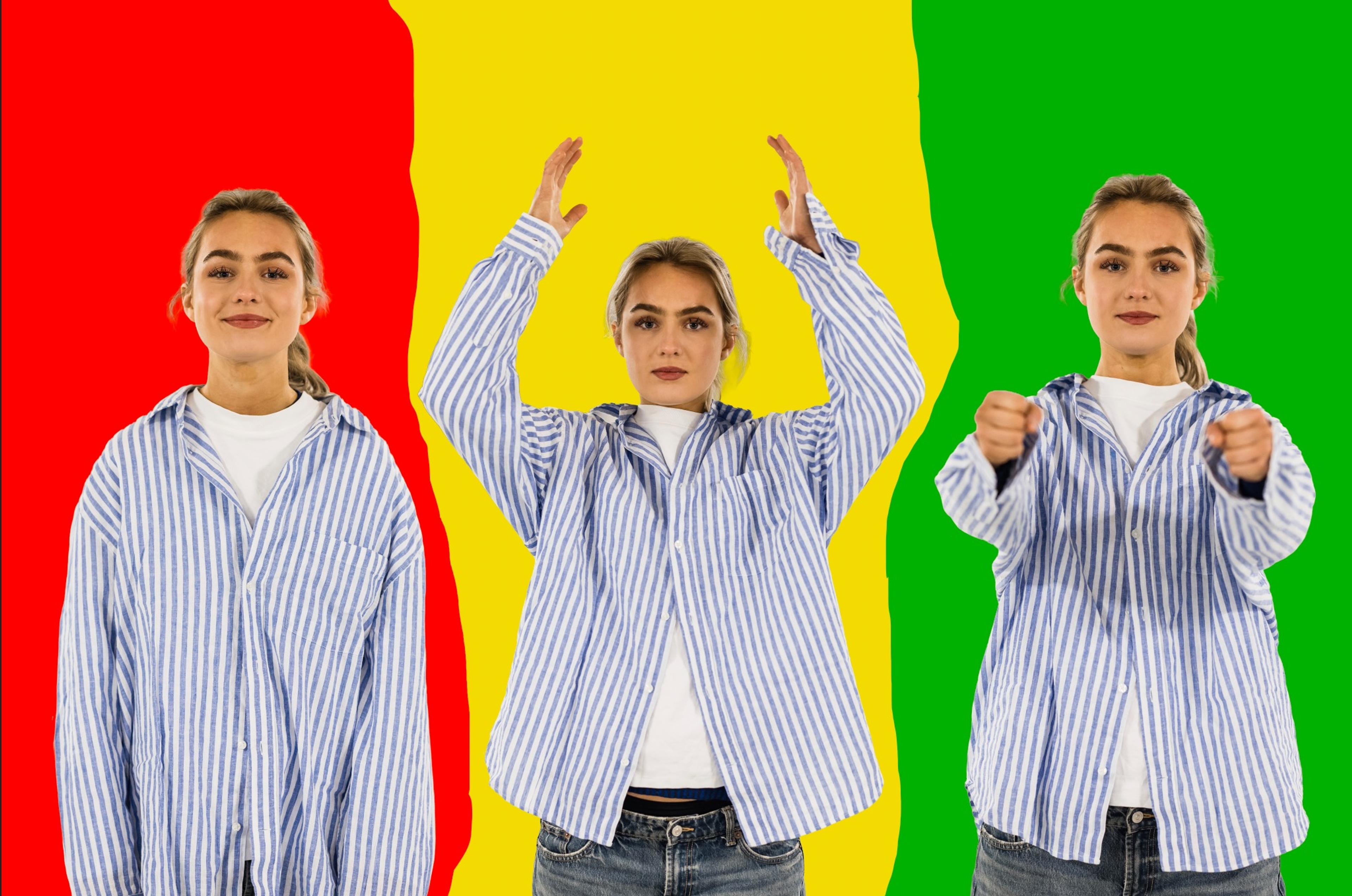 - Gult: Hendene over hodet – hvis du er usikker og trenger en strategi først