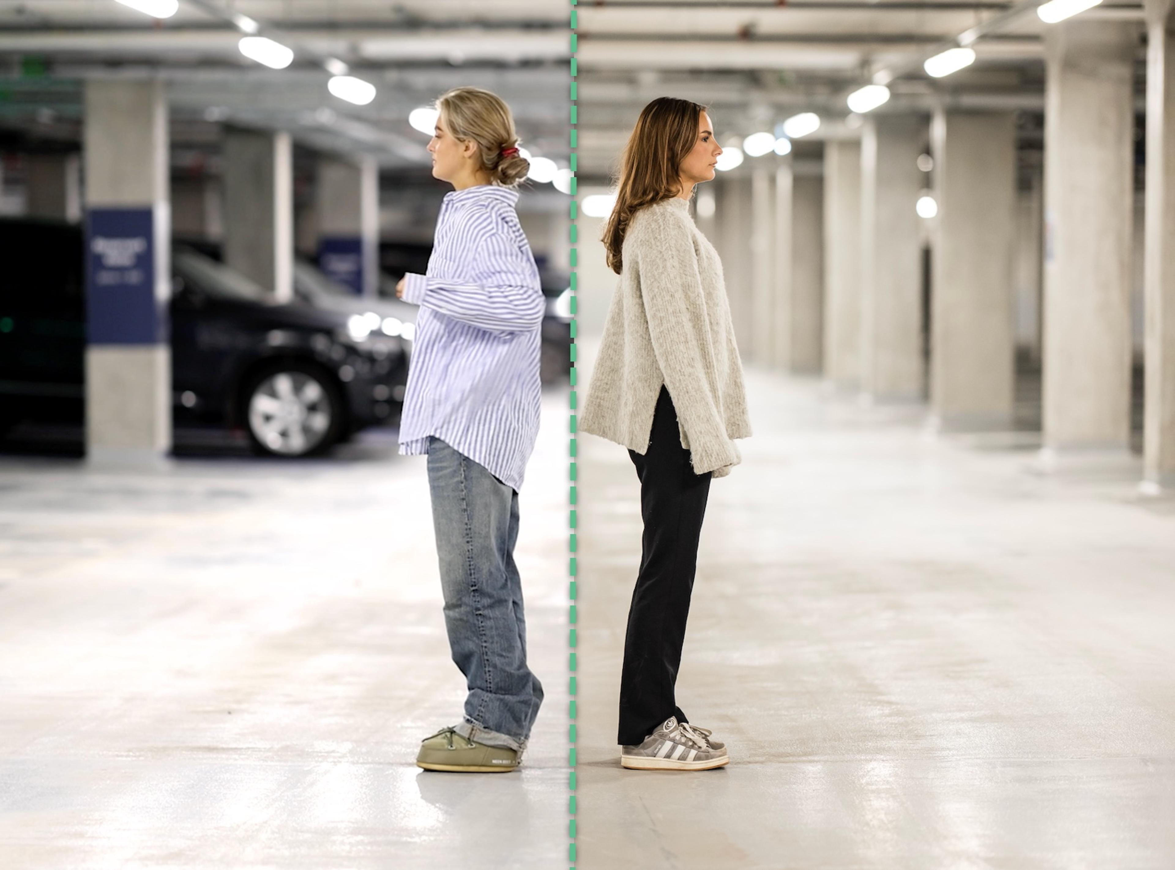 Gå to personer (A og B) sammen og stå rygg mot rygg slik at dere ikke kan se hverandre.