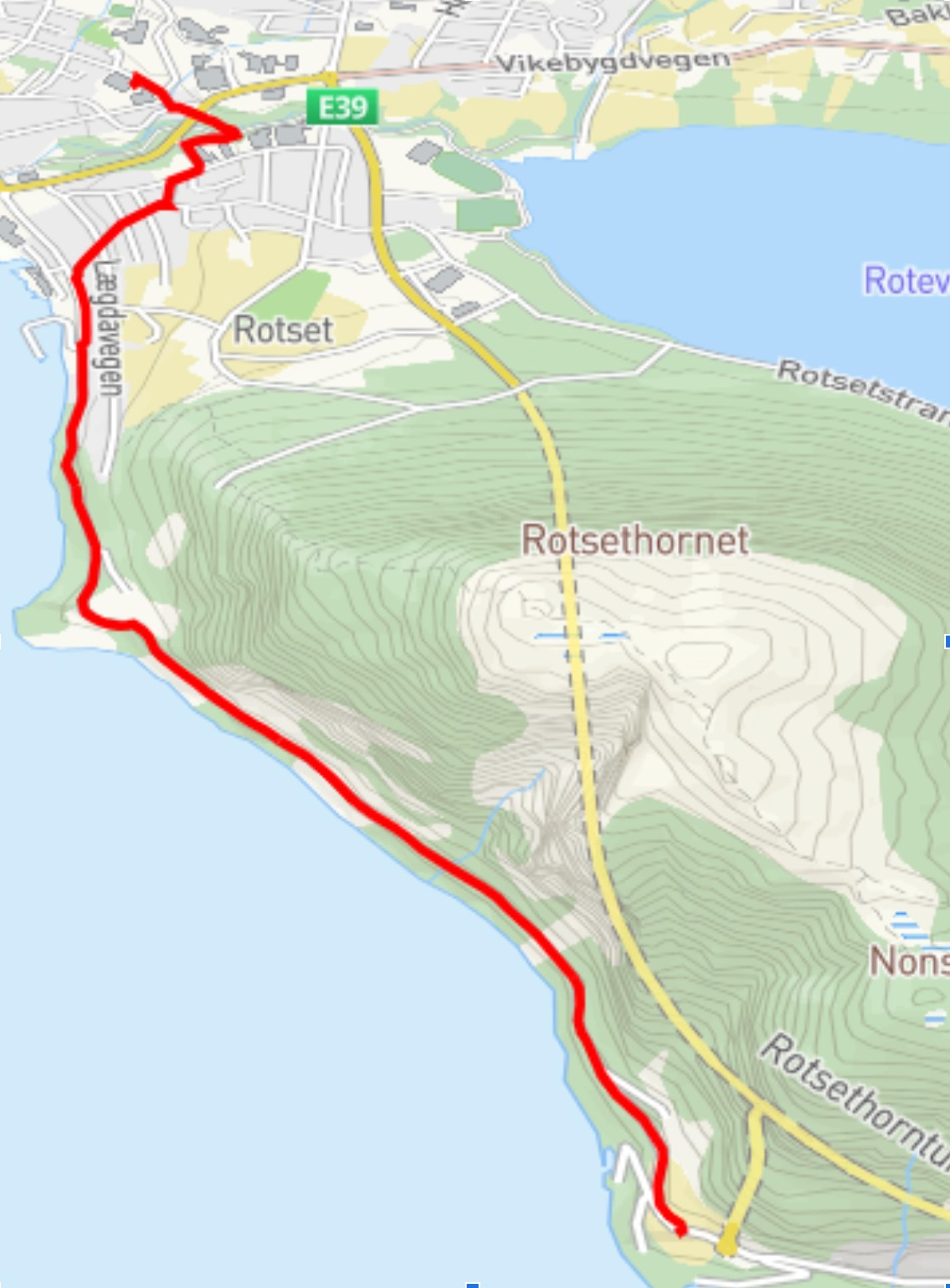 Mitt forslag er at kommunen bygger vegen litt inn.